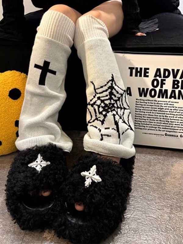 Calentador de piernas reversible con estampado de telaraña cruzada