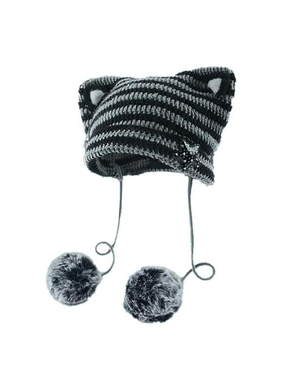 Gorro tejido a rayas con detalle de cuerno hecho a mano