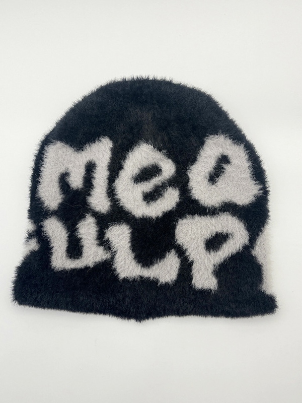 Gorro Beanie de felpa con estampado de letras en contraste de colores