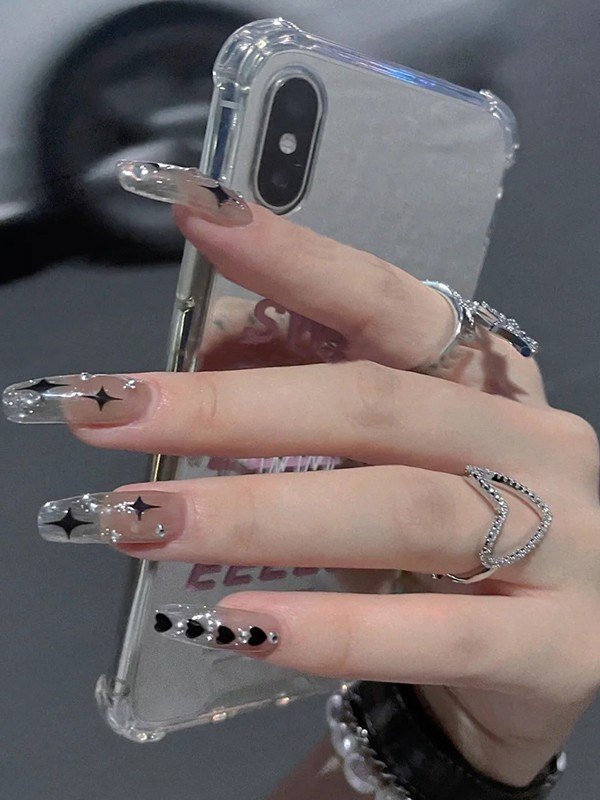 24 piezas de diamantes de imitación decoración corazón estrella prensa en las uñas