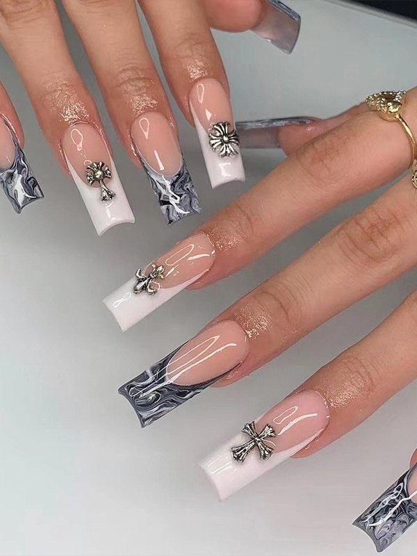 24 piezas de embellecimiento cruzado prensa larga en las uñas