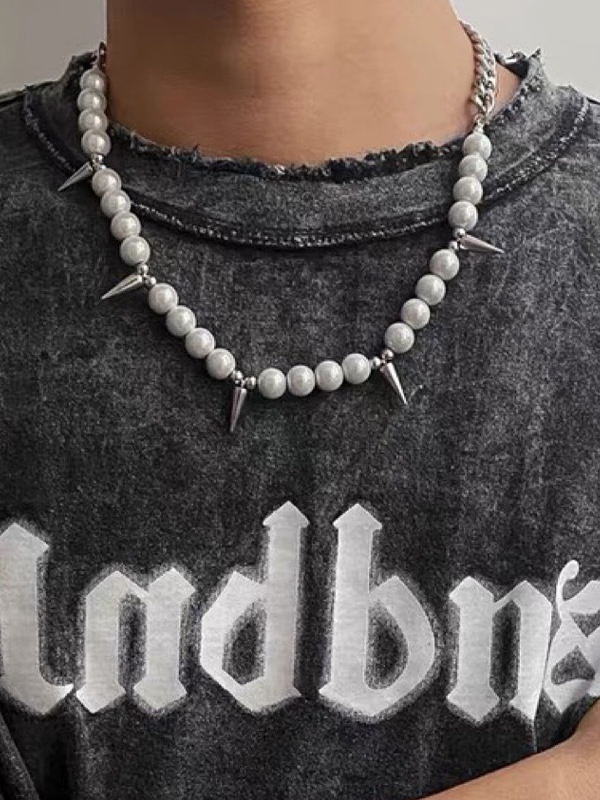Collar de empalme con tachuelas de perlas sintéticas punk para hombre
