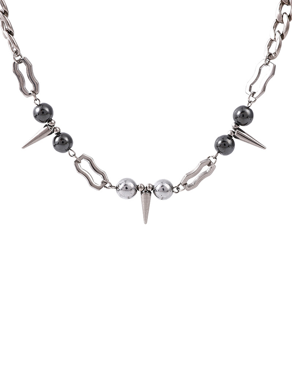 Collar de empalme de cuentas con tachuelas punk para hombre