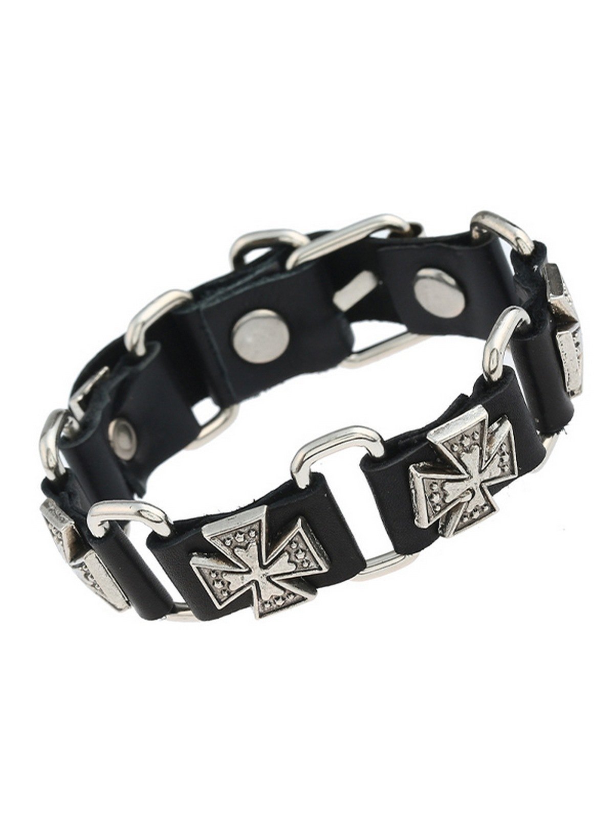 Pulsera de eslabones de cuero de pu con patrón de cruz para hombre