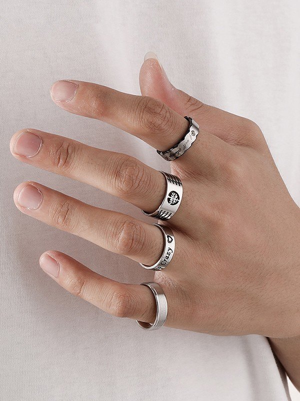 Juego de anillos con patrón de letras talladas de 4 piezas para hombres