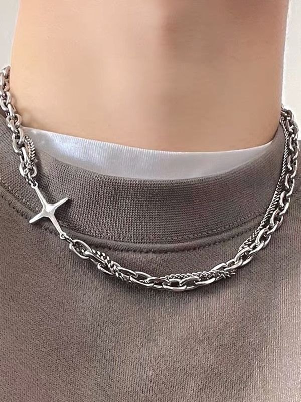 Collar de cadena de eslabones geométricos en capas para hombre