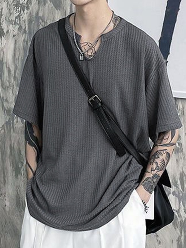 Camiseta de manga corta con cuello con muescas de malla sólida para hombre