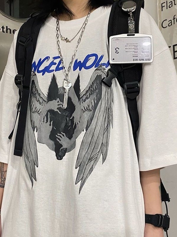 Camiseta estampada de manga corta Angel Wolf para hombre