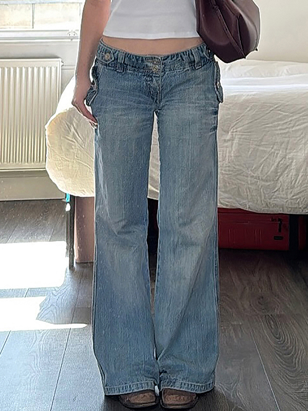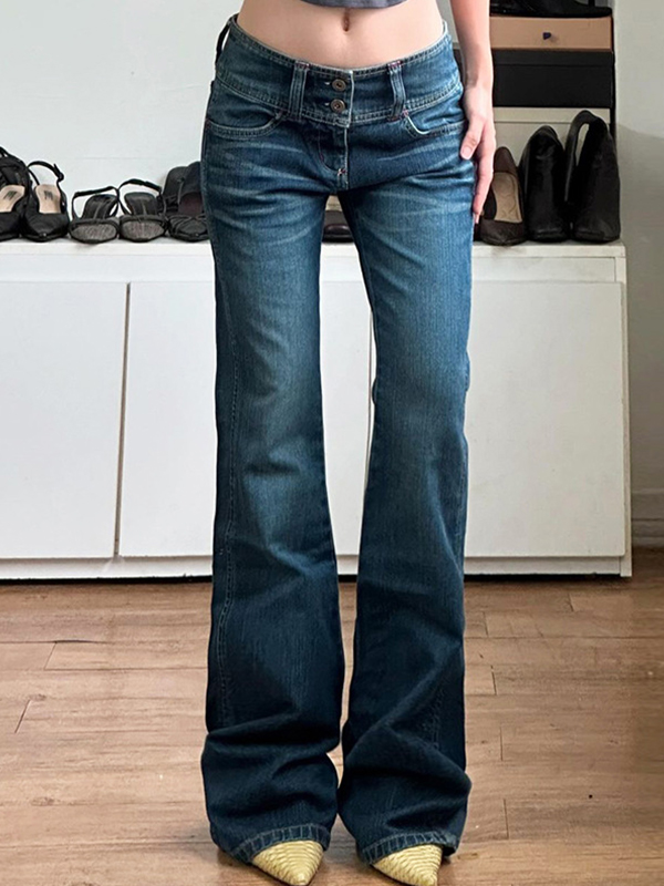 Vaqueros acampanados ajustados con botones y cintura ancha