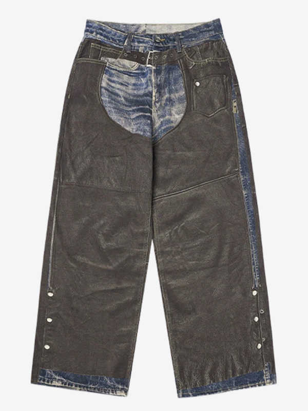 Vaqueros retro desgastados con estampado de patchwork de piel sintética