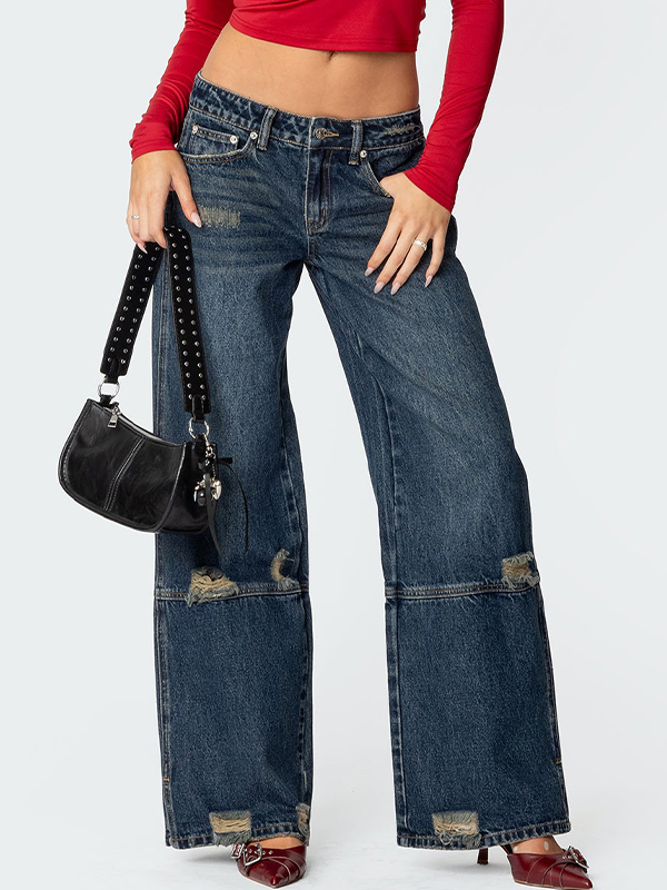 Vaqueros boyfriend de tiro bajo con aberturas y desgastados