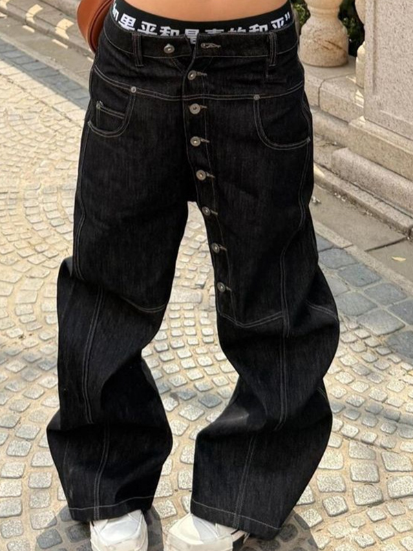 Jeans de hombre con cremallera y patchwork de pierna recta