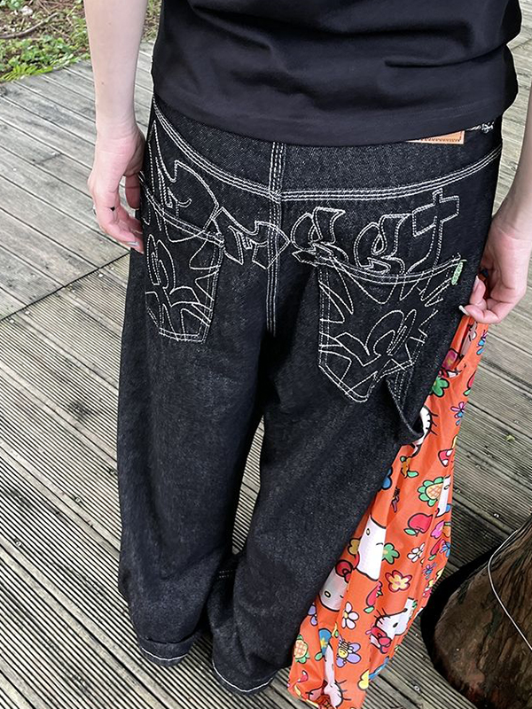 Vaqueros boyfriend de pierna ancha con bordado americano