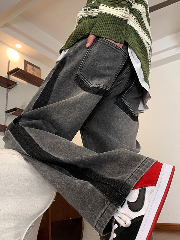 Jeans rectos vintage con ribete en contraste para hombre