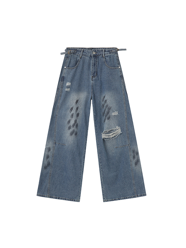 Jeans holgados con agujeros desgastados de estilo callejero
