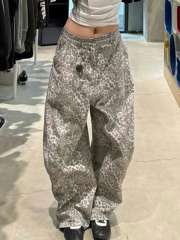 Vaqueros boyfriend estilo cimitarra con estampado de leopardo