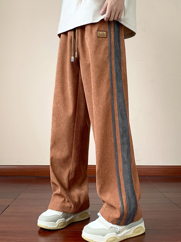 Pantalones de pierna recta a rayas sueltas retro para hombre