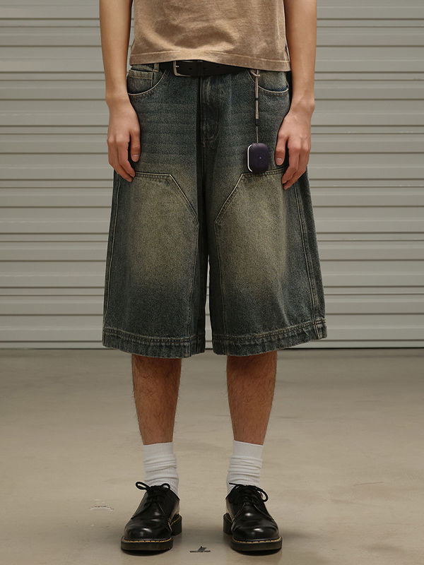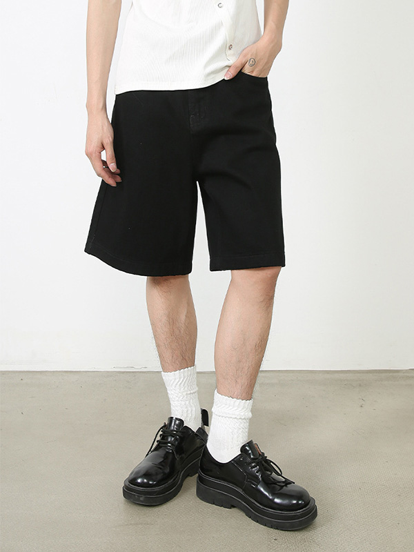 Pantalones cortos de mezclilla con pierna recta y pantalones anchos sueltos