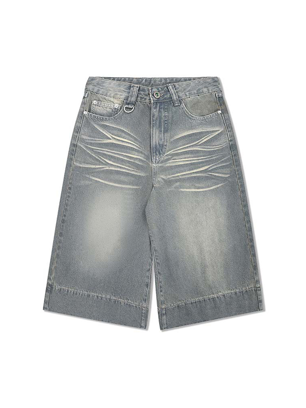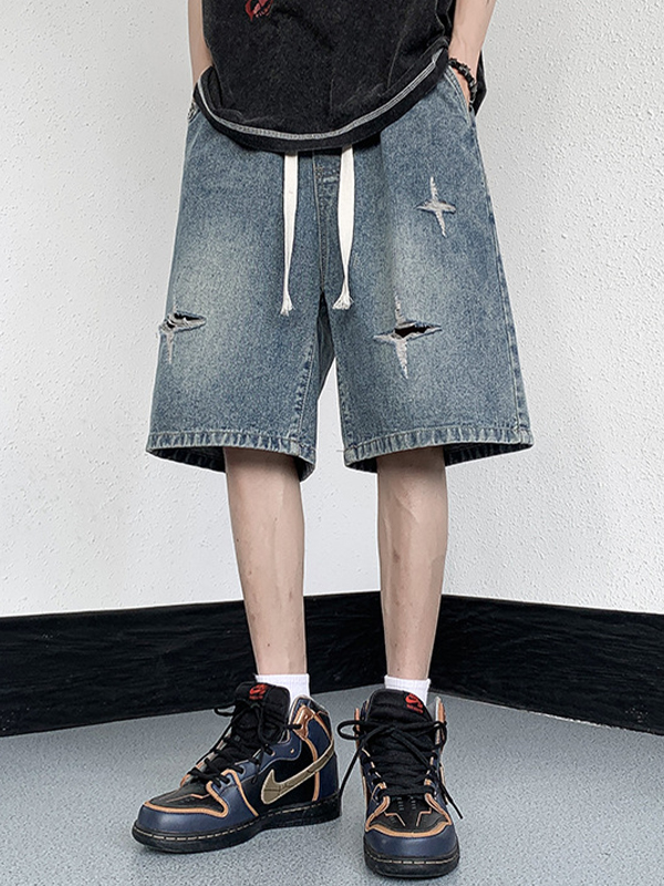 Shorts vaqueros rectos rasgados lavados para hombre
