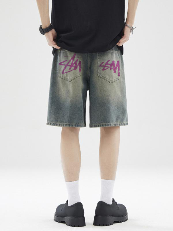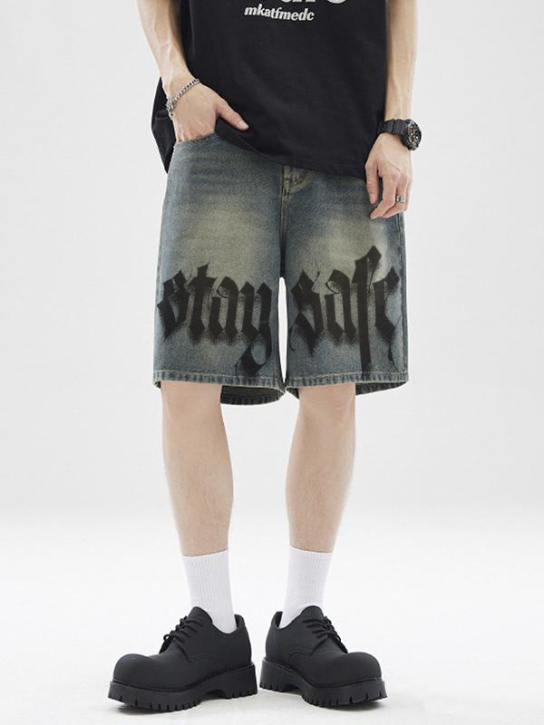 Shorts vaqueros con letras de calle para hombre