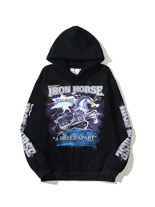 Sudadera con capucha de manga larga de gran tamaño con estampado de felpa de motocicleta para hombre