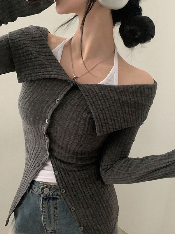 Cárdigan adelgazante de manga larga con un hombro al descubierto