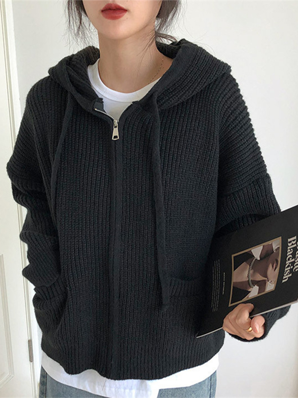 Suéter de punto grueso con capucha holgada