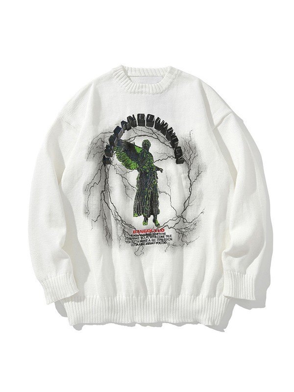 Suéter tipo jersey con gráfico de estatua de relámpago para hombre