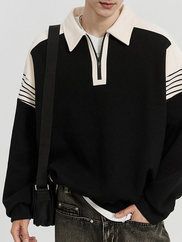 Sudadera de punto con media cremallera en contraste de color para hombre