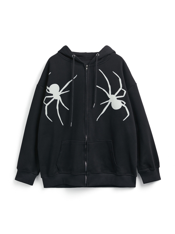 Sudadera con capucha extragrande y cremallera completa con estampado de arañas para hombre