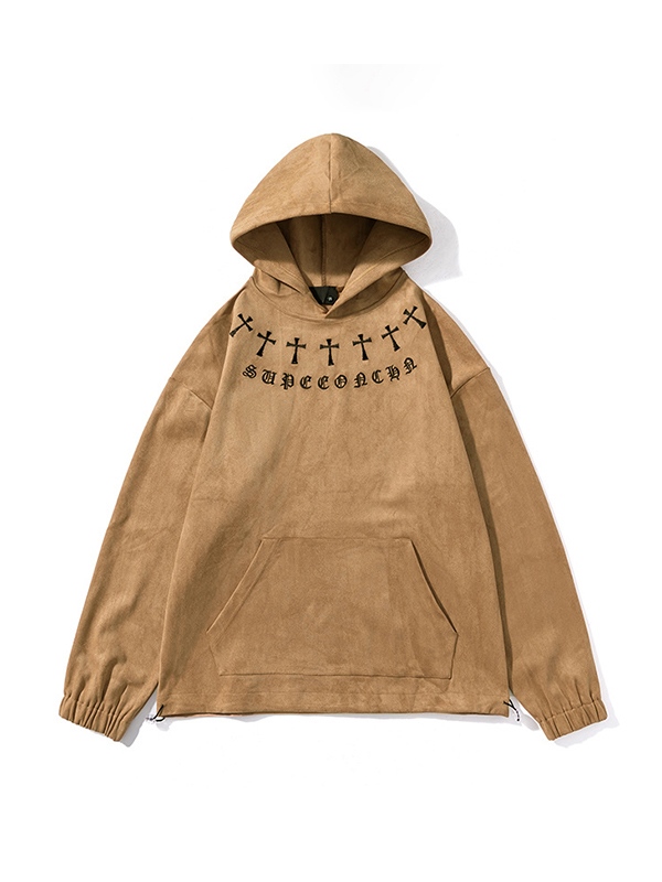 Sudadera con capucha extragrande con bordado cruzado para hombre