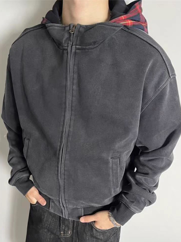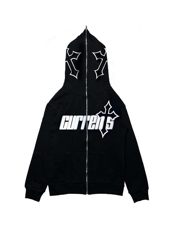 Sudadera con capucha y cremallera con estampado suelto para hombre