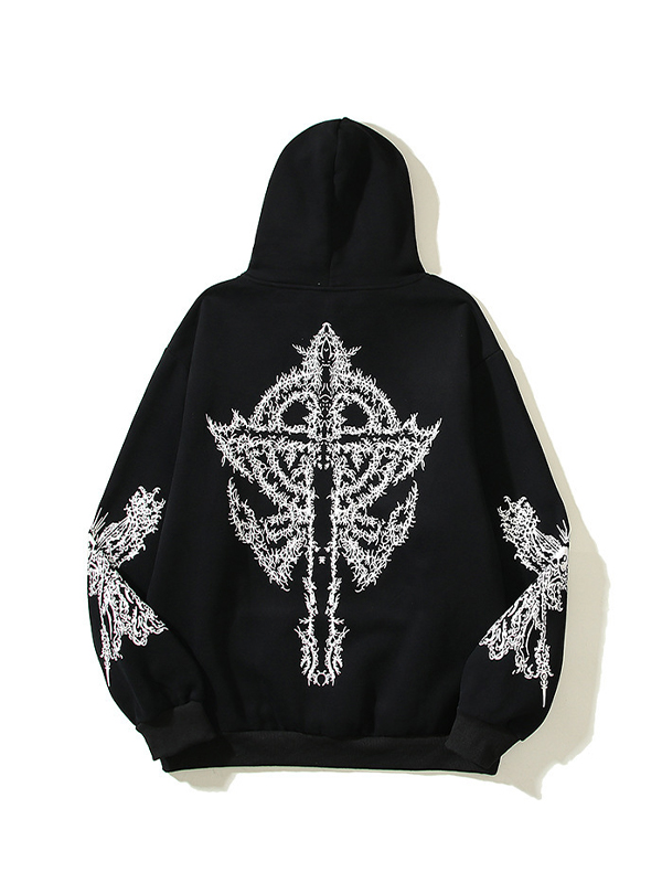 Sudadera con capucha extragrande con estampado de alas para hombre