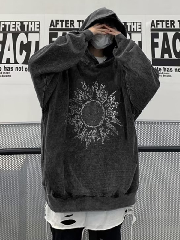 Sudadera con capucha extragrande con estampado de sol desgastado para hombre
