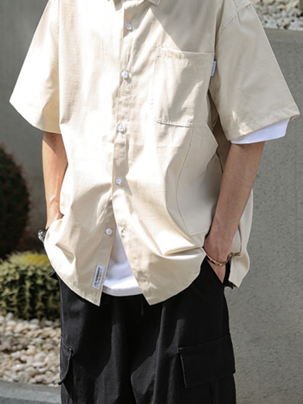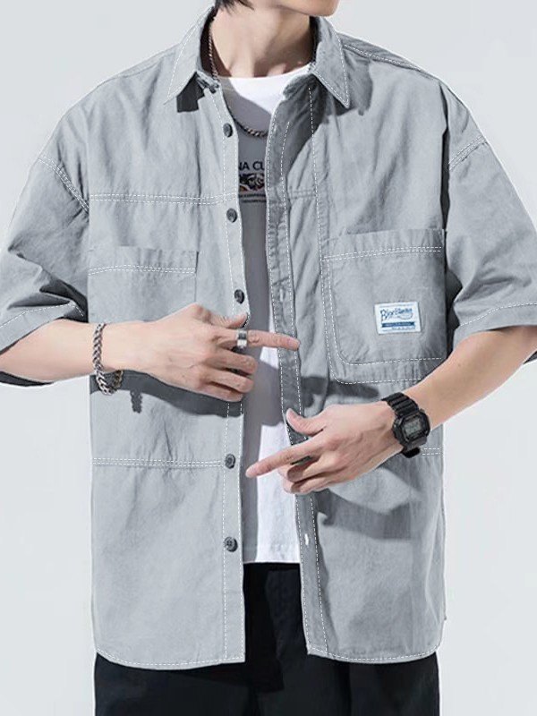 Camisa cargo informal con botones y manga corta para hombre