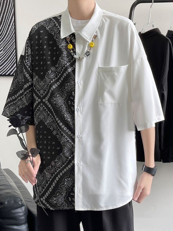 Camisa de hombre con bolsillo y estampado Paisley de patchwork