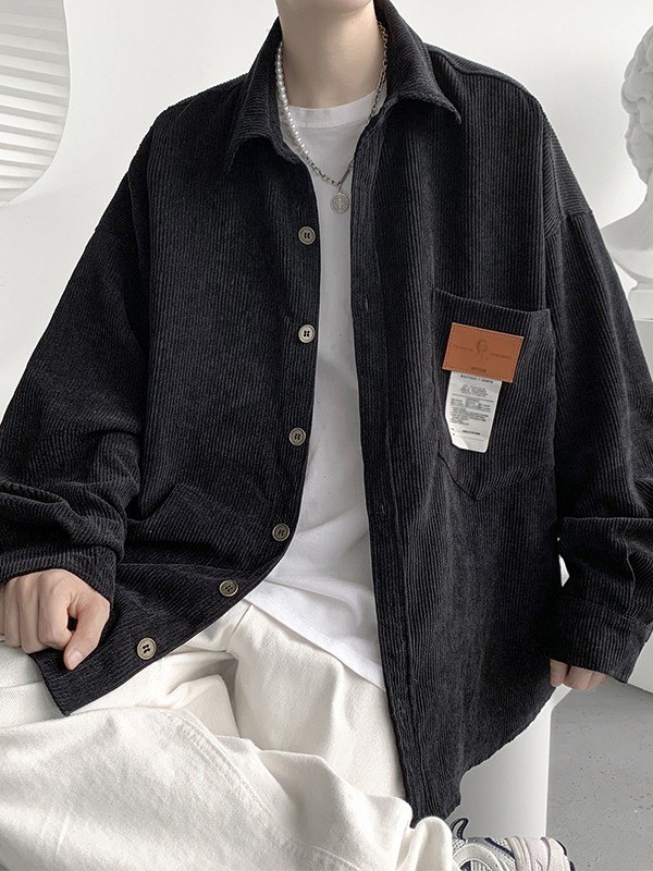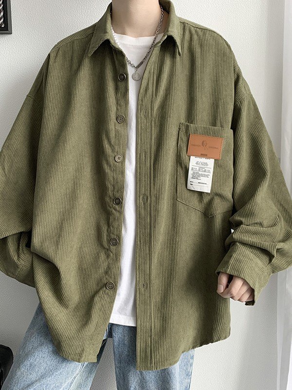 Camisa de manga larga de pana con detalle de parche para hombre
