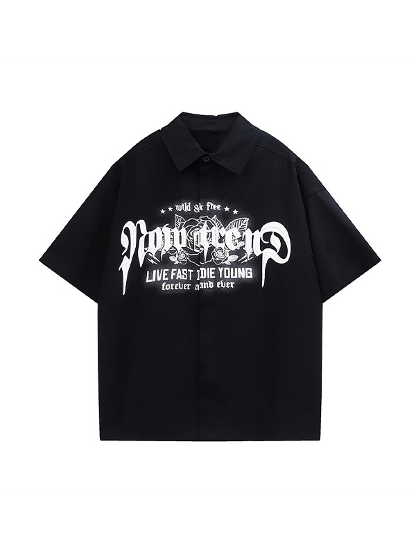 Camisa de botones con gráfico punk para hombre