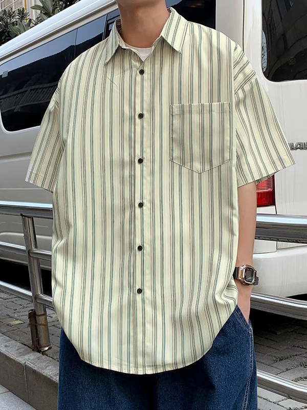 Blusa de manga corta de dos piezas falsa con chaleco de empalme a rayas para hombre