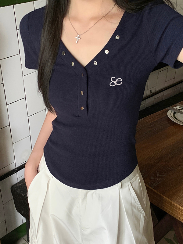 Jerseys de manga corta con cuello en V