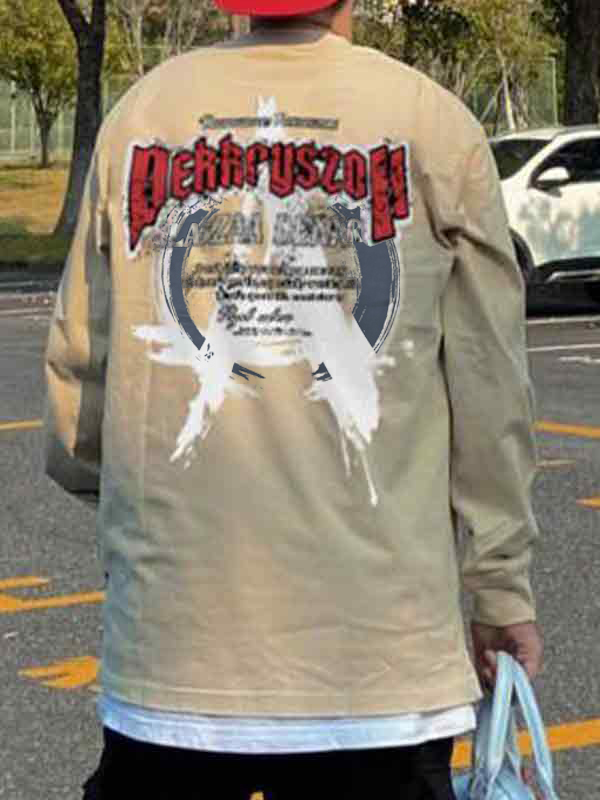 Camiseta de manga larga con estampado de letras callejeras para hombre