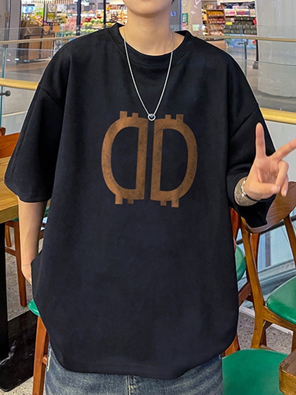 Camiseta extragrande de manga corta de ante con letras para hombre