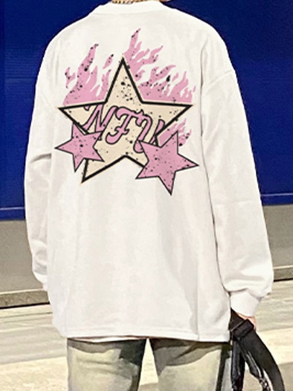 Camiseta de manga larga con cuello redondo y estampado de estrellas para hombre