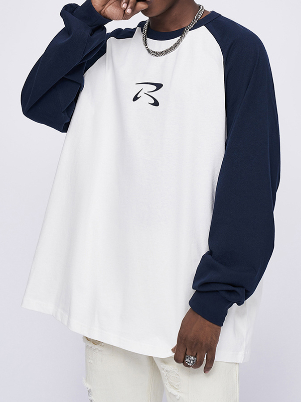Camiseta de manga larga con estampado raglán retro para hombre