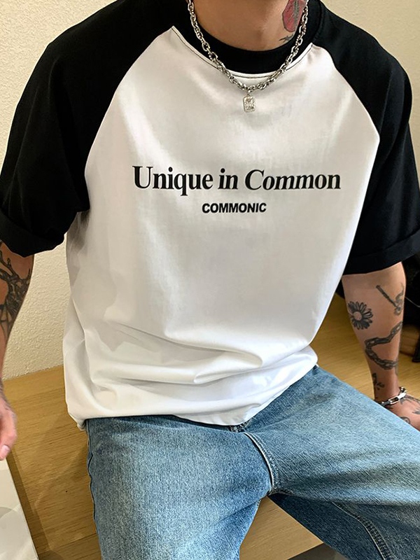 Camiseta de manga corta raglán con estampado de letras para hombre