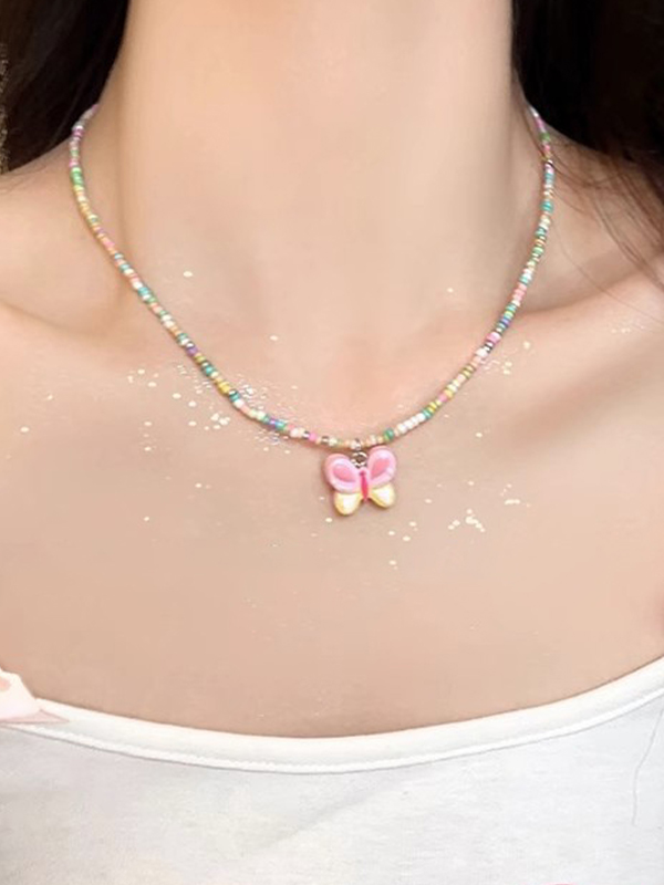 1 collar de mariposas con cuentas de colores