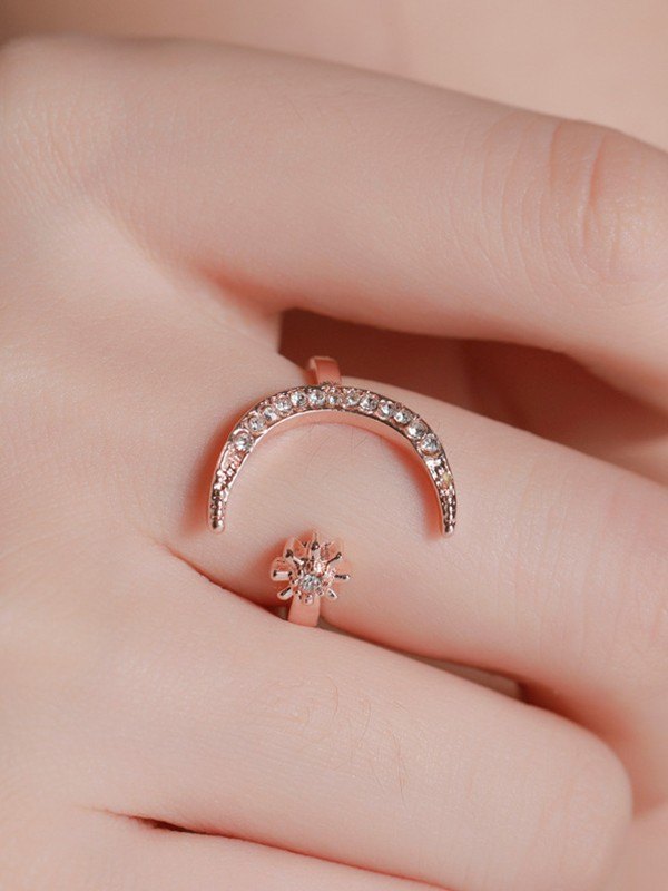 Anillo de puño de luna creciente con diamantes de imitación