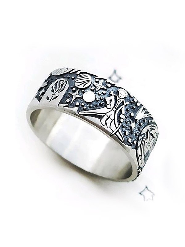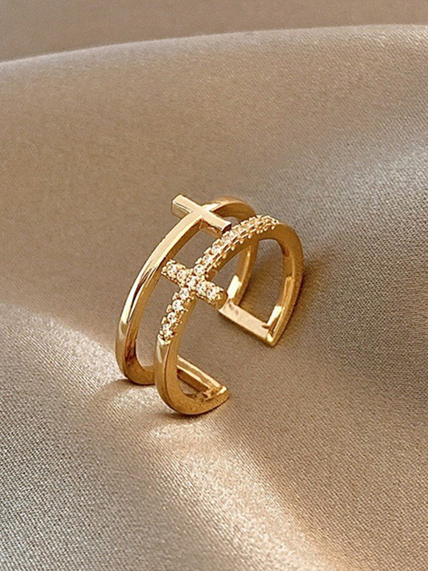 Anillo de puño con dije de planeta con diamantes de imitación de dos vías