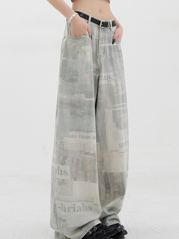 Jeans Boyfriend con diseño de estampado de periódico