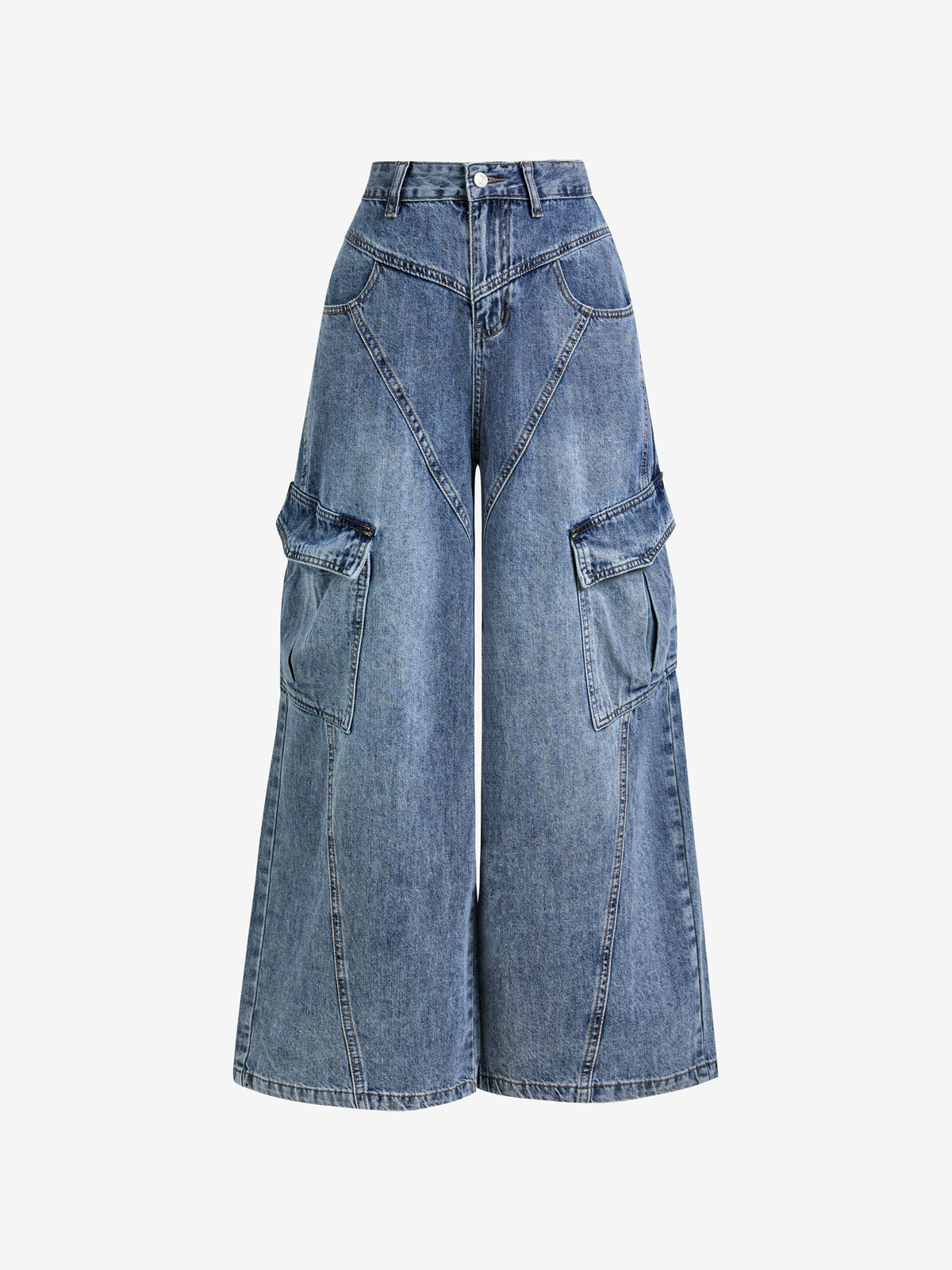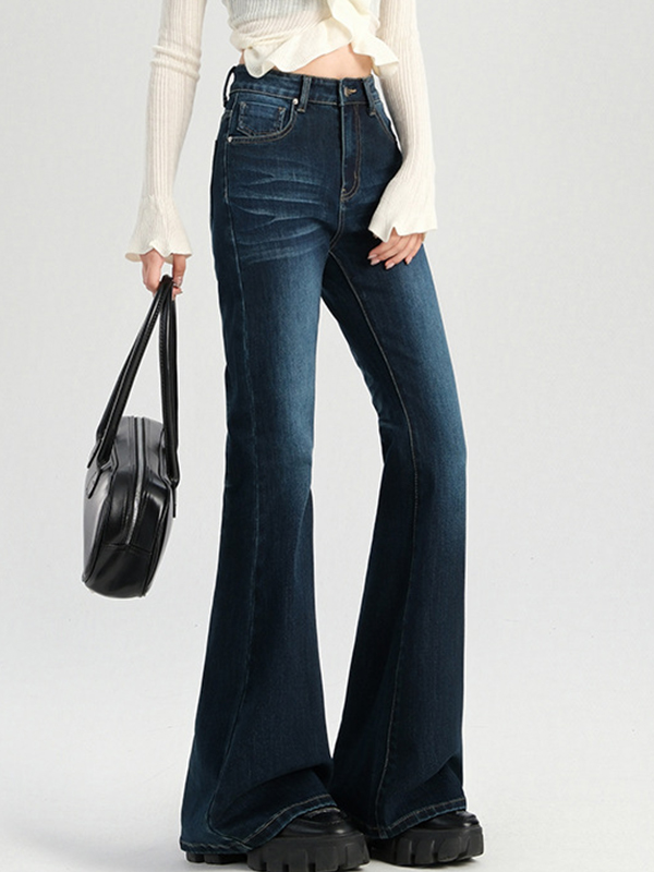 Vaqueros acampanados hasta el suelo, de cintura alta y ligeramente levantados